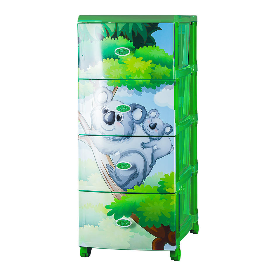 Детский комод с красивой яркой аппликацией состоит из четырёх выдвижных ящиков. Изделие достаточно компактное и не займёт много места. Благодаря большой глубине ящиков комод способен вместить большое количество детских вещей. Отлично подходит для хранения белья, полотенец, детских вещей или игрушек.