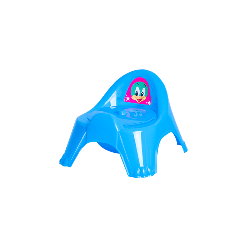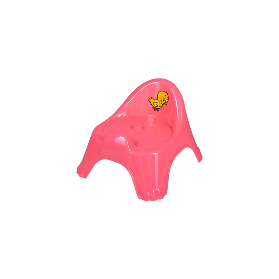 Устойчивый детский горшок с удобной спинкой и крышкой.